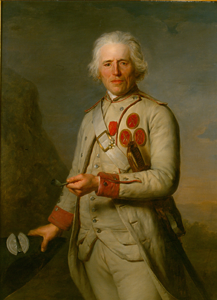 He enlisted in the Régiment de Touraine, today’s 33rd infantry regiment, on September 17, 1716, eleven days after his eighteenth birthday and served there as a fusilier until January 29, 1792—a span of seventy-five years, under Louis XV and Louis XVI.[1] He served in the Charlot Company, Régiment de Touraine and fought in four wars: the War of the Polish Succession, the War of the Austrian Succession, the Seven Years’ War and the American War of Indepenence. Thurel was wounded for the first time in his first campaign, at the Siege of Kehl in 1733. Later, he was shot in the chest with a musket ball during the War of the Polish Succession.