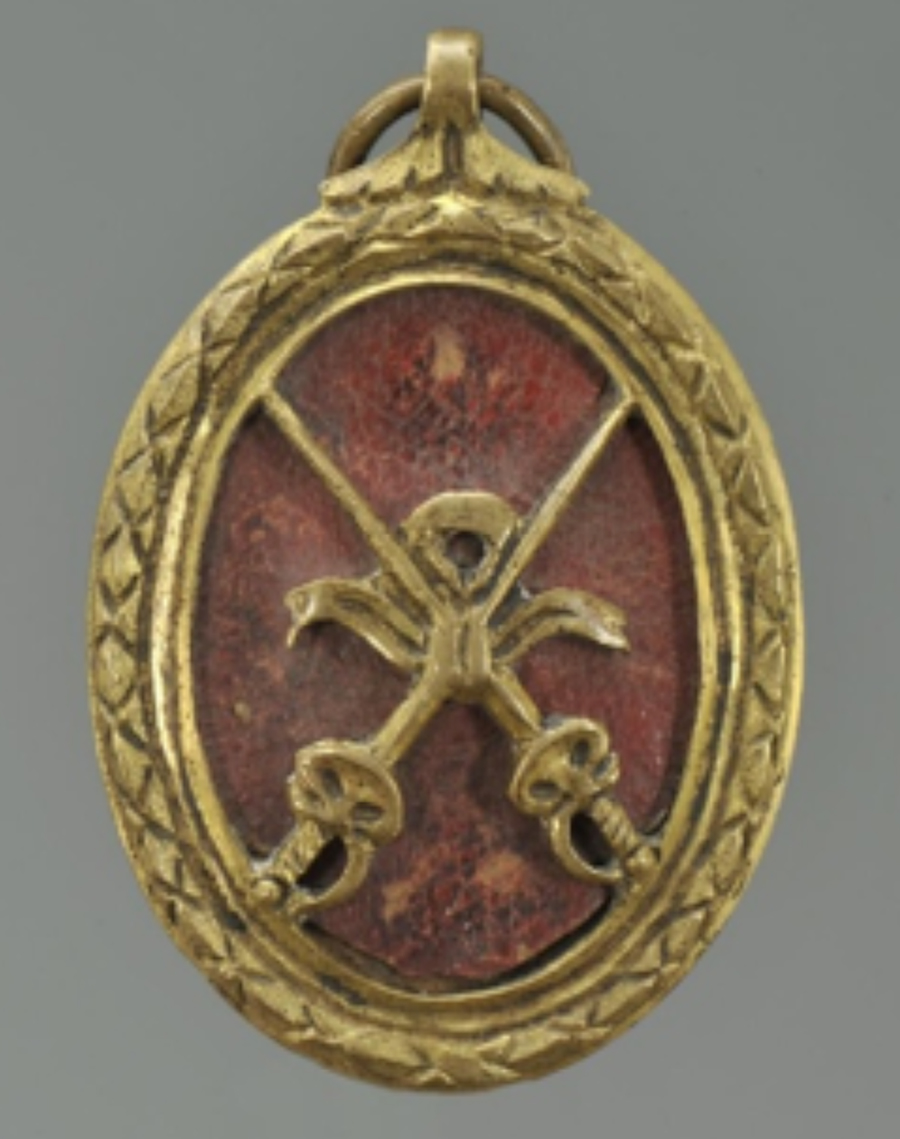 [5] Marc Champenois, “Médaillon Des Deux Épées,” Les Décorations, France Phaleristique: Le site des ordres, décorations et médailles officielles de France, www.france-phaleristique.com/medaillon_deux_epees.htm. The first medals were made of fabric and sewn on the uniforms. Later they were made out of metal.