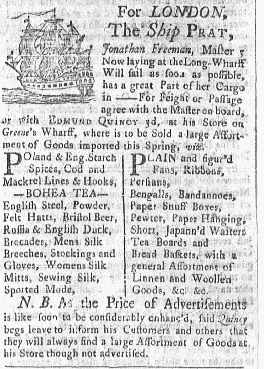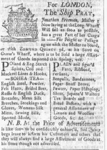 [12] All of the Boston Post Boy and Advertiser newspaper numbers for the time period covered by the invoice were reviewed on Readex (readex.com)